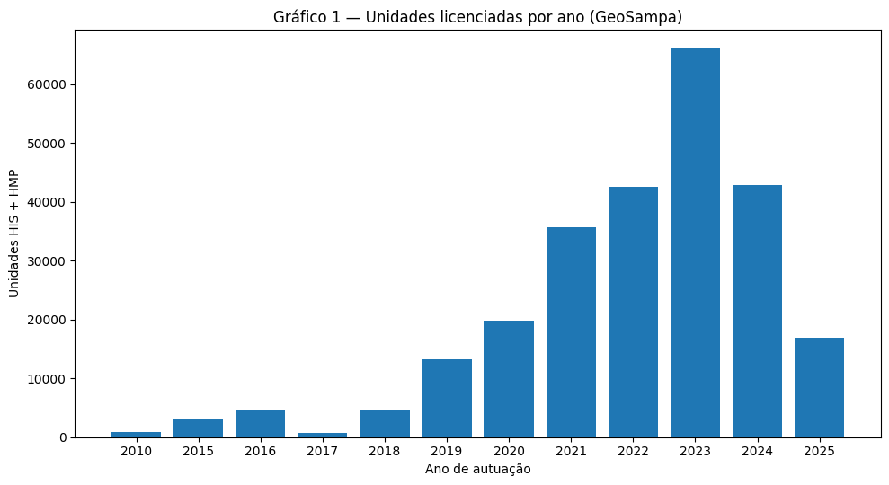 A série temporal dos atos de outorga inicial indica aceleração do licenciamento de habitação popular/social na cidade. A tabela abaixo organiza as informações por ano: