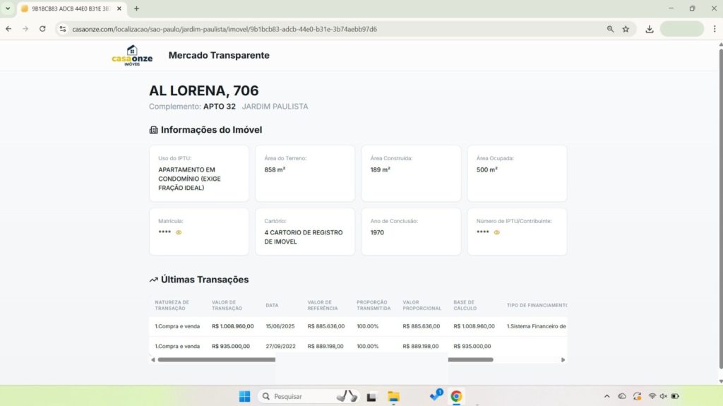 Ao pesquisar um endereço no Mercado Transparente, por exemplo, o de um prédio, a plataforma exibe todas as unidades que foram negociadas no local, destacando informações como preço de venda, metragem, matrícula e quantas vezes elas foram vendidas. Conforme explica Admar, esse histórico traz uma percepção realista para o vendedor e maior segurança para o comprador. “Se a tabela Fipe diz que um determinado modelo de carro usado vale R$ 40 mil, fica fácil vender por R$ 38 mil. Agora, se eu quiser pedir R$ 42 mil, vou ter que apresentar uma boa justificativa ao comprador. No mercado imobiliário é a mesma coisa, se um determinado tipo de apartamento está sendo vendido por R$ 1 milhão, por que vou pedir R$ 1,3 milhão?”, compara.